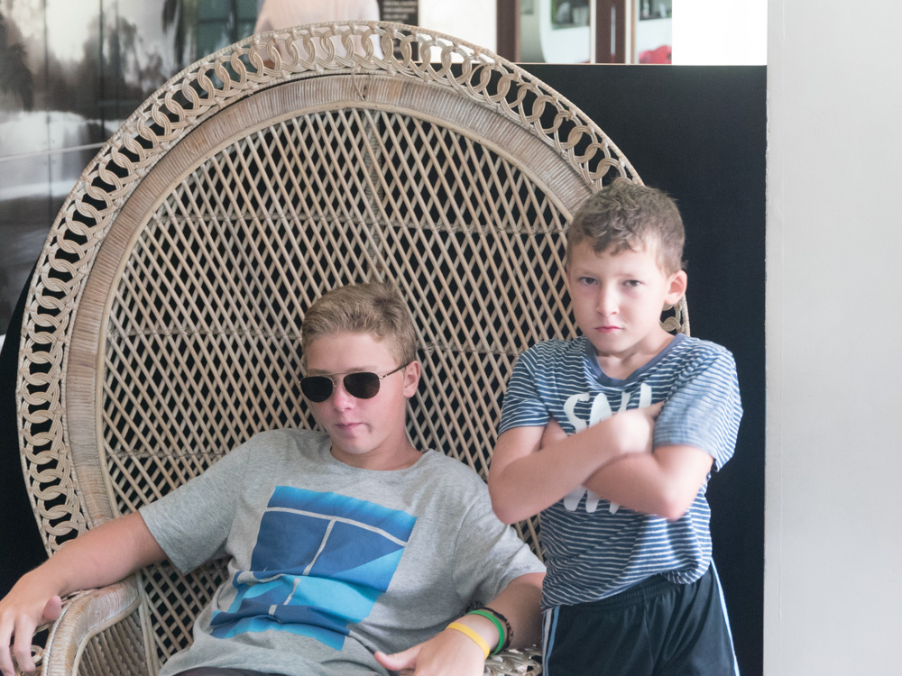 Slik båter og vannscootere i høy hastighet gjør at det nesten heller ikke er skilpadder, store rokker og mantaer i lagunen lenger. Når vi hadde kjørt rundt hele øya, stoppet vi etter å ha sett 75 ulike hoteller som var helt like. Så kom vi fram til et sted der vi skulle dykke med haier. Vi hadde gledet oss til det, men vi ble overrasket igjen. Det eneste som var der var stein, haier og døde koraller og anemoner, og guidene gjorde mye sprøtt. De matet haier som kunne være farlige, de koste med haiene, dro dem i finnene og tok selfie med dem. Både pappa og jeg ble litt revet med så vi tok også på en av haiene, men det var bare for å få kjenne litt på haihuden. Etter hvert ble haiene veldig sure, de glefset etter alle og enhver som nærmet seg. Dagen etter fortalte en kiteinstruktør at noen år tidligere hadde en hai blitt så sur at den hadde fått tak i en guide som prøvde å ta selfie med den. Haien var blitt så sur at den nesten hadde revet av hele beinet hans. Guiden overlevde på den siste posen med blod før han ble transportert med fly til Tahiti.